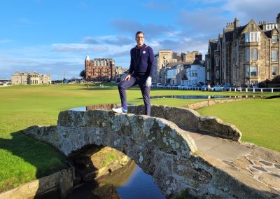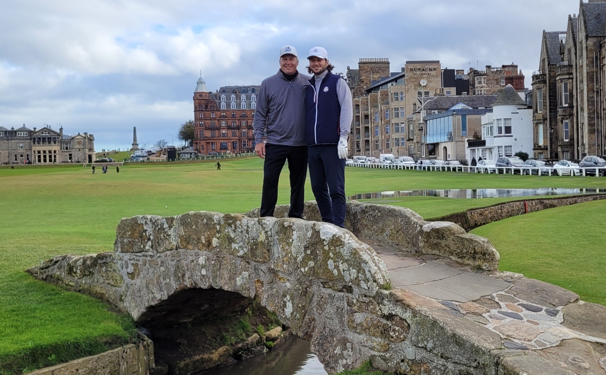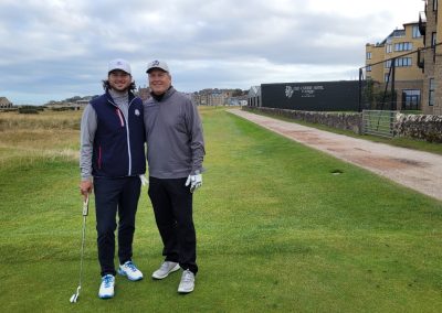 Thursday, October 17, 2024 will be a day that some in our group will never forget. Some did their own thing that day. A majority of the group played The Castle Course under beautiful, sunny skies. But Gabe Neitzel, Stephen Watson, and Chris and Austin Della will remember the day for another reason. All 4 of them were able to snag spots to play The Old Course! Gabe was the first to go off and some of us got to watch him play his first couple of holes from the 4th floor of the Old Course Hotel at breakfast. A large group of us then went down to see The Dellas off the first hole before going over to the Castle Course. I left the Castle Course early to go back and hook up with the Dellas for their final couple of holes together. Then I went back to the 17th tee box to wait for Stephen Watson and get some photos and video for him as well. I was very proud to help record some memories for all of them!!
