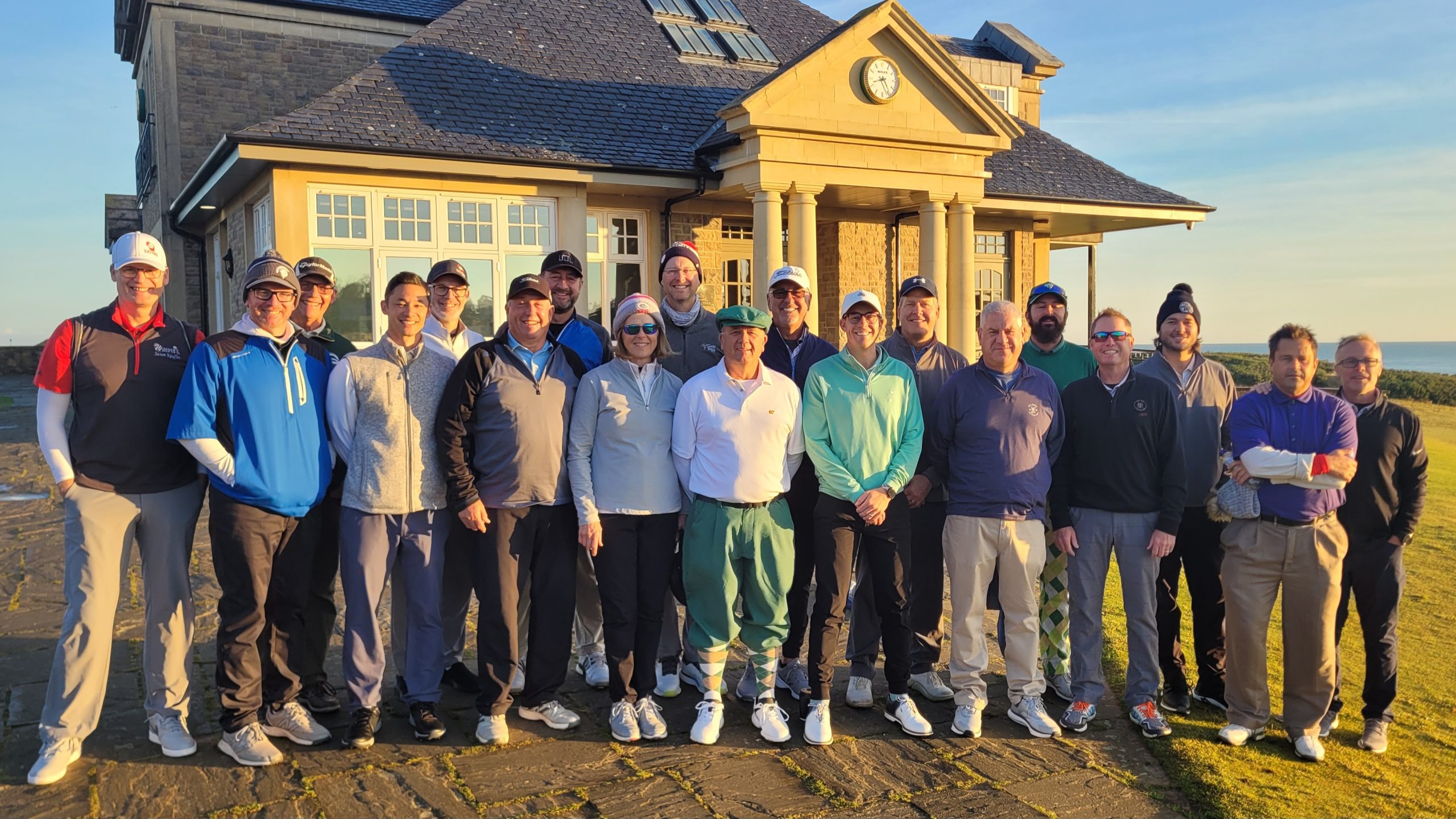 I began advertising with our local ESPN radio affiliate in 2023, sponsoring their “On The Tee” program hosted by Gabe Neitzel and Stephen Watson. One of the natural fits was to work with them on a trip across the pond to the home of golf, St. Andrews, Scotland. We ended up with a group of 20 avid golfers to experience one of the greatest destinations in all of golf together. Front Row: Cory Silseth, Joe Kauflin, Tim Haldiman, Deb Turk, Steve Schonert, Stephen Watson, Mark Blutstein, Chad McGraw, Bill Conway. Back Row: Jason Kauflin, Andy Kuhl, John Kauflin, Jim Larkin, Glen Turk, Dino DeRose, Chris Della, Gabe Neitzel, Austin Della, Dan Della. Frank Kauflin not pictured.